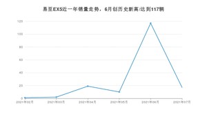 2021年7月,易至EX5销量为17辆,环比下降85.47%。1-7月份,易至EX5销量为166辆,在最近1年中,易至EX5销量在2021年06月达到最高,销量为117辆。