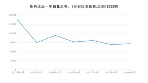 斯柯达 7月份销量数据发布 同比下降45.01%(2021年)