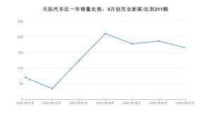 在国内市场上,天际汽车在2021年7月的销量为165辆,环比下降11.76%。1-7月份,天际汽车累计销量为969辆,较去年同期增长24%。