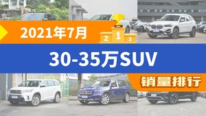 2021年7月的乘用车销量数据已经出炉,据众车网汽车行业数据监测显示,7月国内乘用车市场销量达到165.18万辆,同比增长0.72%,环比下降2.56%。每月各个细分市场的销量排行榜也成为了大家所关注的话题,今天众车网为大家带来了2021年7月30-35万SUV的销量排行榜单,有哪些车型能跻身销量榜呢?下面我们直接看数据。