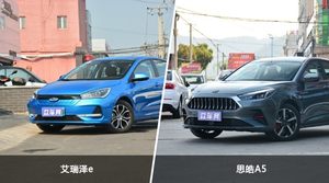 还是以两个车系中主销车型来进行对比,分别是2020款 艾瑞泽e 改款 超值版(以下简称艾瑞泽e)及2021款 思皓A5 1.5T CVT豪华智能型(以下简称思皓A5)。