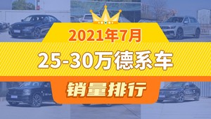 2021年7月的乘用车销量数据已经出炉,据众车网汽车行业数据监测显示,7月国内乘用车市场销量达到165.18万辆,同比增长0.72%,环比下降2.56%。每月各个细分市场的销量排行榜也成为了大家所关注的话题,今天众车网为大家带来了2021年7月25-30万德系车的销量排行榜单,有哪些车型能跻身销量榜呢?下面我们直接看数据。
