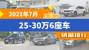 2021年7月的乘用车销量数据已经出炉,据众车网汽车行业数据监测显示,7月国内乘用车市场销量达到165.18万辆,同比增长0.72%,环比下降2.56%。每月各个细分市场的销量排行榜也成为了大家所关注的话题,今天众车网为大家带来了2021年7月25-30万6座车的销量排行榜单,有哪些车型能跻身销量榜呢?下面我们直接看数据。