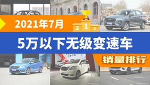 2021年7月的乘用车销量数据已经出炉,据众车网汽车行业数据监测显示,7月国内乘用车市场销量达到165.18万辆,同比增长0.72%,环比下降2.56%。每月各个细分市场的销量排行榜也成为了大家所关注的话题,今天众车网为大家带来了2021年7月5万以下无级变速车的销量排行榜单,有哪些车型能跻身销量榜呢?下面我们直接看数据。