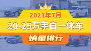 2021年7月的乘用车销量数据已经出炉,据众车网汽车行业数据监测显示,7月国内乘用车市场销量达到165.18万辆,同比增长0.72%,环比下降2.56%。每月各个细分市场的销量排行榜也成为了大家所关注的话题,今天众车网为大家带来了2021年7月20-25万手自一体车的销量排行榜单,有哪些车型能跻身销量榜呢?下面我们直接看数据。