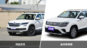 还是以两个车系中主销车型来进行对比,分别是2021款 柯迪亚克 TSI330 7座两驱豪华优享版(以下简称柯迪亚克)及2021款 途岳新能源 全景优享版(以下简称途岳新能源)。