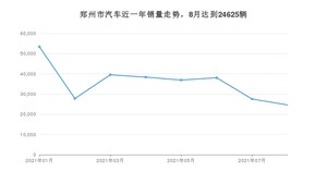 2021年8月,郑州市汽车总销量为24625辆,同比下降40.93%,环比下降10.62%。1-8月份,郑州市总销量为286369辆,同比增长13.78%。在最近1年中,郑州市销量在2021年01月达到最高,销量为53438辆。