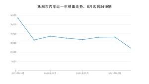 2021年8月,株洲市汽车总销量为2419辆,同比下降39.71%,环比下降33.54%。1-8月份,株洲市总销量为29317辆,同比增长5.98%。在最近1年中,株洲市销量在2021年01月达到最高,销量为5696辆。