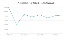 2021年8月,广州市汽车总销量为42396辆,同比增长1.87%,环比增长3.85%。1-8月份,广州市总销量为323836辆,同比增长26.05%。在最近1年中,广州市销量在2021年01月达到最高,销量为59192辆。