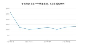 2021年8月,平凉市汽车总销量为1316辆,同比增长1.62%,环比增长4.44%。1-8月份,平凉市总销量为10861辆,同比增长9.74%。在最近1年中,平凉市销量在2021年01月达到最高,销量为2628辆。