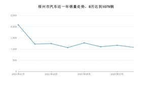 2021年8月,梧州市汽车总销量为1079辆,同比下降16.42%,环比下降7.78%。1-8月份,梧州市总销量为10238辆,同比增长13.54%。在最近1年中,梧州市销量在2021年01月达到最高,销量为2076辆。