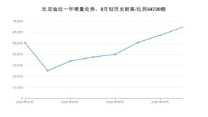 在国内市场上,比亚迪在2021年8月的销量为64720辆,同比增长133.63%,环比增长12.82%。1-8月份,比亚迪累计销量为359772辆,较去年同期增长97.82%。