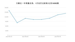 2021年8月,天籁销量为14306辆,同比增长30.67%,环比增长7.2%。1-8月份,天籁销量为94649辆,同比增长43.04%。在最近1年中,天籁销量在2021年01月达到最高,销量为16082辆。