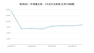 2021年8月,瑞虎8销量为10130辆,同比增长27.69%,环比增长4.15%。1-8月份,瑞虎8销量为80607辆,同比增长69.46%。在最近1年中,瑞虎8销量在2021年01月达到最高,销量为17080辆。