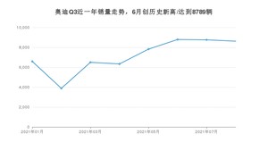 2021年8月,奥迪Q3销量为8621辆,同比增长35.36%,环比下降1.54%。1-8月份,奥迪Q3销量为57282辆,同比增长31.85%。在最近1年中,奥迪Q3销量在2021年06月达到最高,销量为8789辆。