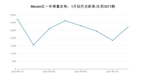 2021年8月,Macan销量为2731辆,同比下降15.19%,环比增长47.7%。1-8月份,Macan销量为20314辆,同比下降11.65%。在最近1年中,Macan销量在2021年01月达到最高,销量为3211辆。