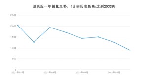 2021年8月,途锐销量为895辆,同比下降43.96%,环比下降29.02%。1-8月份,途锐销量为12030辆,同比增长8.04%。在最近1年中,途锐销量在2021年01月达到最高,销量为2032辆。