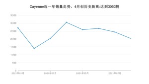2021年8月,Cayenne销量为2026辆,同比下降8.98%,环比下降17.04%。1-8月份,Cayenne销量为18931辆,同比增长27.65%。在最近1年中,Cayenne销量在2021年04月达到最高,销量为3053辆。