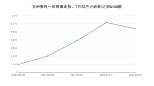 2021年8月,亚洲狮销量为5376辆,环比下降12.59%。1-8月份,亚洲狮销量为18422辆,在最近1年中,亚洲狮销量在2021年07月达到最高,销量为6150辆。