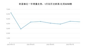 2021年8月,欧蓝德销量为4382辆,同比增长7.85%,环比下降2.58%。1-8月份,欧蓝德销量为34840辆,同比增长6.82%。在最近1年中,欧蓝德销量在2021年01月达到最高,销量为6250辆。