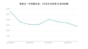 2021年8月,智跑销量为2713辆,同比下降53.5%,环比下降19.78%。1-8月份,智跑销量为29009辆,同比下降25.92%。在最近1年中,智跑销量在2021年01月达到最高,销量为5482辆。