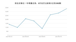 2021年8月,欧拉好猫销量为3382辆,环比增长20.01%。1-8月份,欧拉好猫销量为15962辆,在最近1年中,欧拉好猫销量在2021年08月达到最高,销量为3382辆。