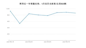 2021年8月,辉昂销量为862辆,同比增长11.37%,环比下降2.93%。1-8月份,辉昂销量为6512辆,同比增长27.09%。在最近1年中,辉昂销量在2021年01月达到最高,销量为923辆。