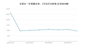 2021年8月,名图销量为941辆,同比下降73.8%,环比下降14.45%。1-8月份,名图销量为9838辆,同比下降62.34%。在最近1年中,名图销量在2021年01月达到最高,销量为2616辆。