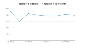2021年8月,威驰销量为3946辆,同比下降15.5%,环比下降3.78%。1-8月份,威驰销量为31589辆,同比增长3.28%。在最近1年中,威驰销量在2021年01月达到最高,销量为4597辆。