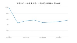 2021年8月,宝马X6销量为561辆,同比增长15.2%,环比增长9.36%。1-8月份,宝马X6销量为4611辆,同比增长93.5%。在最近1年中,宝马X6销量在2021年01月达到最高,销量为986辆。