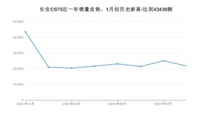 2021年8月,长安CS75销量为21755辆,同比下降6.57%,环比下降13.08%。1-8月份,长安CS75销量为197715辆,同比增长33.18%。在最近1年中,长安CS75销量在2021年01月达到最高,销量为43436辆。