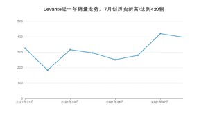 2021年8月,Levante销量为397辆,同比增长71.12%,环比下降5.48%。1-8月份,Levante销量为2466辆,同比增长53.17%。在最近1年中,Levante销量在2021年07月达到最高,销量为420辆。