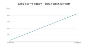 2021年8月,五菱品牌总体销量达到63508辆,其中五菱征程销量达到853辆,占品牌总销量的1.34%。