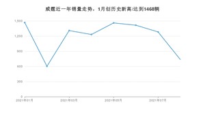 2021年8月,威霆销量为736辆,同比下降24.9%,环比下降42.59%。1-8月份,威霆销量为9503辆,同比增长42.5%。在最近1年中,威霆销量在2021年01月达到最高,销量为1468辆。