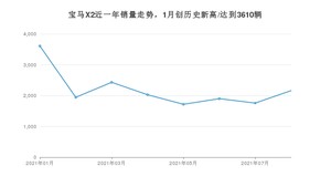 2021年8月,宝马X2销量为2163辆,同比增长0.7%,环比增长23.04%。1-8月份,宝马X2销量为17557辆,同比增长8.71%。在最近1年中,宝马X2销量在2021年01月达到最高,销量为3610辆。