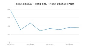 2021年8月,英菲尼迪Q50L销量为360辆,同比下降45.54%,环比下降2.7%。1-8月份,英菲尼迪Q50L销量为3223辆,同比下降36.92%。在最近1年中,英菲尼迪Q50L销量在2021年01月达到最高,销量为762辆。