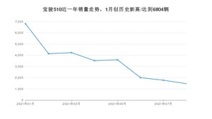 2021年8月,宝骏510销量为1463辆,同比下降73.9%,环比下降17.39%。1-8月份,宝骏510销量为27530辆,同比下降44.27%。在最近1年中,宝骏510销量在2021年01月达到最高,销量为6804辆。