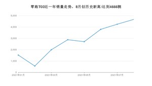 2021年8月,零跑T03销量为4666辆,同比增长612.37%,环比增长10%。1-8月份,零跑T03销量为22343辆,同比增长1%。在最近1年中,零跑T03销量在2021年08月达到最高,销量为4666辆。