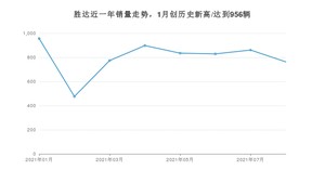 2021年8月,胜达销量为763辆,同比下降25.42%,环比下降11.38%。1-8月份,胜达销量为6392辆,同比下降3.24%。在最近1年中,胜达销量在2021年01月达到最高,销量为956辆。