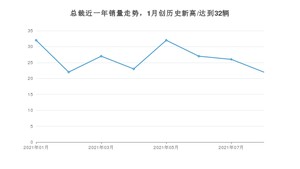 2021年8月,总裁销量为22辆,同比下降52.17%,环比下降15.38%。1-8月份,总裁销量为211辆,同比增长19.21%。在最近1年中,总裁销量在2021年01月达到最高,销量为32辆。