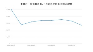 2021年8月,豪越销量为2683辆,同比下降21.64%,环比下降19.02%。1-8月份,豪越销量为27257辆,同比增长304.41%。在最近1年中,豪越销量在2021年01月达到最高,销量为4987辆。