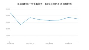 2021年8月,比亚迪F3销量为3504辆,同比增长40.89%,环比下降6.26%。1-8月份,比亚迪F3销量为27933辆,同比增长53.53%。在最近1年中,比亚迪F3销量在2021年01月达到最高,销量为4381辆。