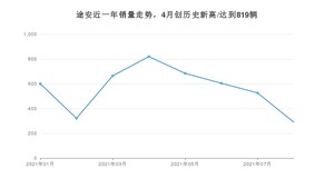 2021年8月,途安销量为290辆,同比下降67.42%,环比下降44.87%。1-8月份,途安销量为4508辆,同比下降28.09%。在最近1年中,途安销量在2021年04月达到最高,销量为819辆。