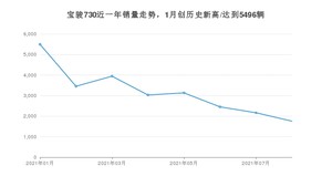 2021年8月,宝骏730销量为1756辆,同比下降59.46%,环比下降18.93%。1-8月份,宝骏730销量为25434辆,同比下降24.97%。在最近1年中,宝骏730销量在2021年01月达到最高,销量为5496辆。