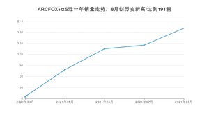 2021年8月,ARCFOX αS销量为191辆,环比增长31.72%。1-8月份,ARCFOX αS销量为554辆,在最近1年中,ARCFOX αS销量在2021年08月达到最高,销量为191辆。