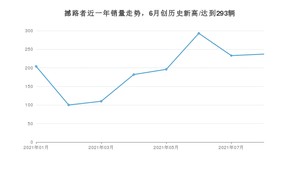 2021年8月,撼路者销量为237辆,同比增长0.42%,环比增长1.72%。1-8月份,撼路者销量为1555辆,同比增长68.66%。在最近1年中,撼路者销量在2021年06月达到最高,销量为293辆。