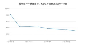 2021年8月,悦动销量为3011辆,同比下降47.29%,环比下降10.63%。1-8月份,悦动销量为34785辆,同比下降16.42%。在最近1年中,悦动销量在2021年01月达到最高,销量为8169辆。