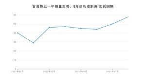 2021年8月,古思特销量为58辆,同比增长2%,环比增长16%。1-8月份,古思特销量为359辆,同比增长273.96%。在最近1年中,古思特销量在2021年08月达到最高,销量为58辆。