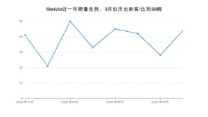 2021年8月,Stelvio销量为44辆,同比下降4.35%,环比增长57.14%。1-8月份,Stelvio销量为304辆,同比下降15.79%。在最近1年中,Stelvio销量在2021年03月达到最高,销量为50辆。