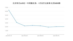 2021年8月,北京现代ix25销量为2046辆,同比下降73.98%,环比增长0.44%。1-8月份,北京现代ix25销量为22224辆,同比下降51.05%。在最近1年中,北京现代ix25销量在2021年01月达到最高,销量为6295辆。